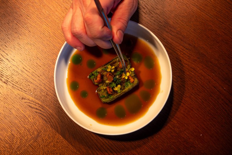 Základom je vždy surovina. Pozeráme sa na to, čo je v danom období dostupné, čo nám ponúknu farmári a dodávatelia, a tiež na to, čo máme uložené vo vlastných zásobách. Z týchto možností vychádzame a začíname kombinovať. Na tanier najprv dostaneme základ, suroviny a ich textúry. Až pri ochutnávaní kuchár cíti, čo tomu ešte chýba, ako to vybalansovať. Postupne tak z jednej suroviny vznikajú rôzne textúry a podoby. Niekedy sa stane, že prvý pokus je perfektný. Ale pri iných chodoch robíme päť či šesť pokusov, kým sme spokojní. Je to proces, ktorý môže byť rýchly, ale často trvá dlhšie, pretože chceme, aby bol výsledok naozaj vyladený.